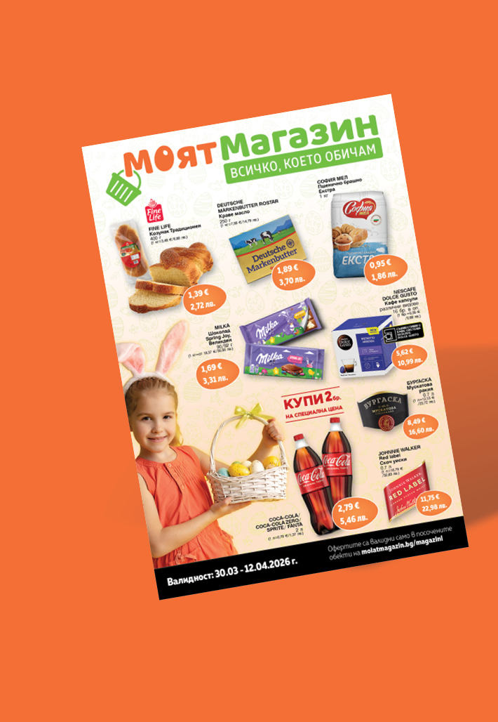 От 30 март до 26 април 2026 г.купи продукти с марките: Троя, Хипер, Споко, Престиж, Ная, Роден край, Мираж, Траяна, Престиж Paradise, Престиж Musli, Престиж Насладки, Престиж Oh la la, Престиж Cookies, Суха паста Престиж, Престиж Wellness от Моят Магазин за поне 2,50 € / 4,89 лв. с ДДС, регистрирай касовата бележка и участвай в теглене за награди: 5 бр. телевизор LG LED 43UA74003LB!